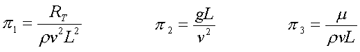 For ship resistance, r,v,L,g,mall serve to influence a result, or: