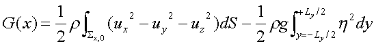 If these conditions are met, a simple momentum balance at the plane ahead of the ship and behind the ship will produce a net decrease in flux equal to the wave-making resistance. Using the Bernoulli assumption, the description for momentum of a vertical plane of water before hitting the hull can be described as:
