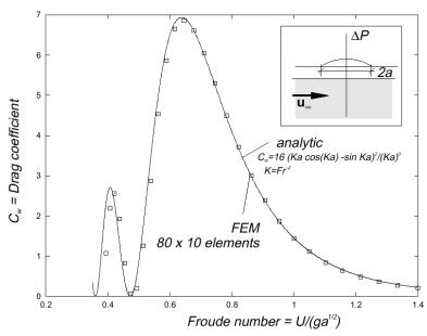 A finite element analysis uses this information to evaluate drag coefficients at different Froude numbers and outputs results like:
