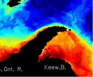 http://superior.eng.ohio-state.edu/lakes/superior/nf-index.html Since the Lake has a large surface area, the fetch, or distance wind travels along the surface of the water, is also quite large. This can result in the formation of large waves under the right meteorological conditions. Storm surges are common on Lake Superior, especially in the autumn months. Winds blowing across Lake Superior can come from all directions although the winds are usually dominated by northwesterly winds (40%) (Phillips, 1978). The bathymetry along the northwest shore of the Peninsula is quite steep. For example, the Lake reaches a depth of 200 m, 2 km off the coast of the northern half of the Peninsula near Eagle Harbor. This unique feature is also paralleled by a steep temperature gradient that extends 3-10 km from the shoreline. This environment supports the formation of a warm coastal current that flows in a northeastward direction along the north shore of the Keweenaw. This phenomena is known as the Keweenaw Current. Wind direction and speed strongly influence the current. Westerly winds intensify the current while easterly winds destroy it (VanLuven, 1999). The surface current velocity usually ranges from 0.5-1.0 m/s (Ragotzkie,1966). Because this is a warm water current, it has been captured in AVHRR images that mapped Lake Superior surface water tempuratures. http://kites.chemistry.mtu.edu/KITES/picts/AVHRRcap.html It should also be noted that the shores of Lake Superior are less-developed than the shores of the other Great Lakes. Because much of the Lake Superior watershed is not developed or used for agricultural purposes, along with the Lake's great depth and cold temperatures, have resulted in an oligotrophic lake with low nutrient levels as well as low biological productivity.